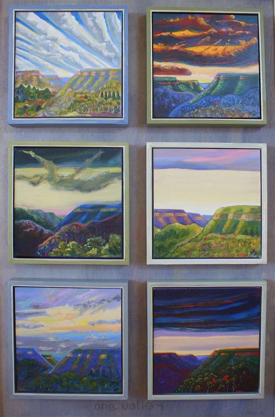 Jamieson Valley [from left] 1, 2, 3 & 4 [below] (oil on canvas), all 34 x 34 cm / $ 640